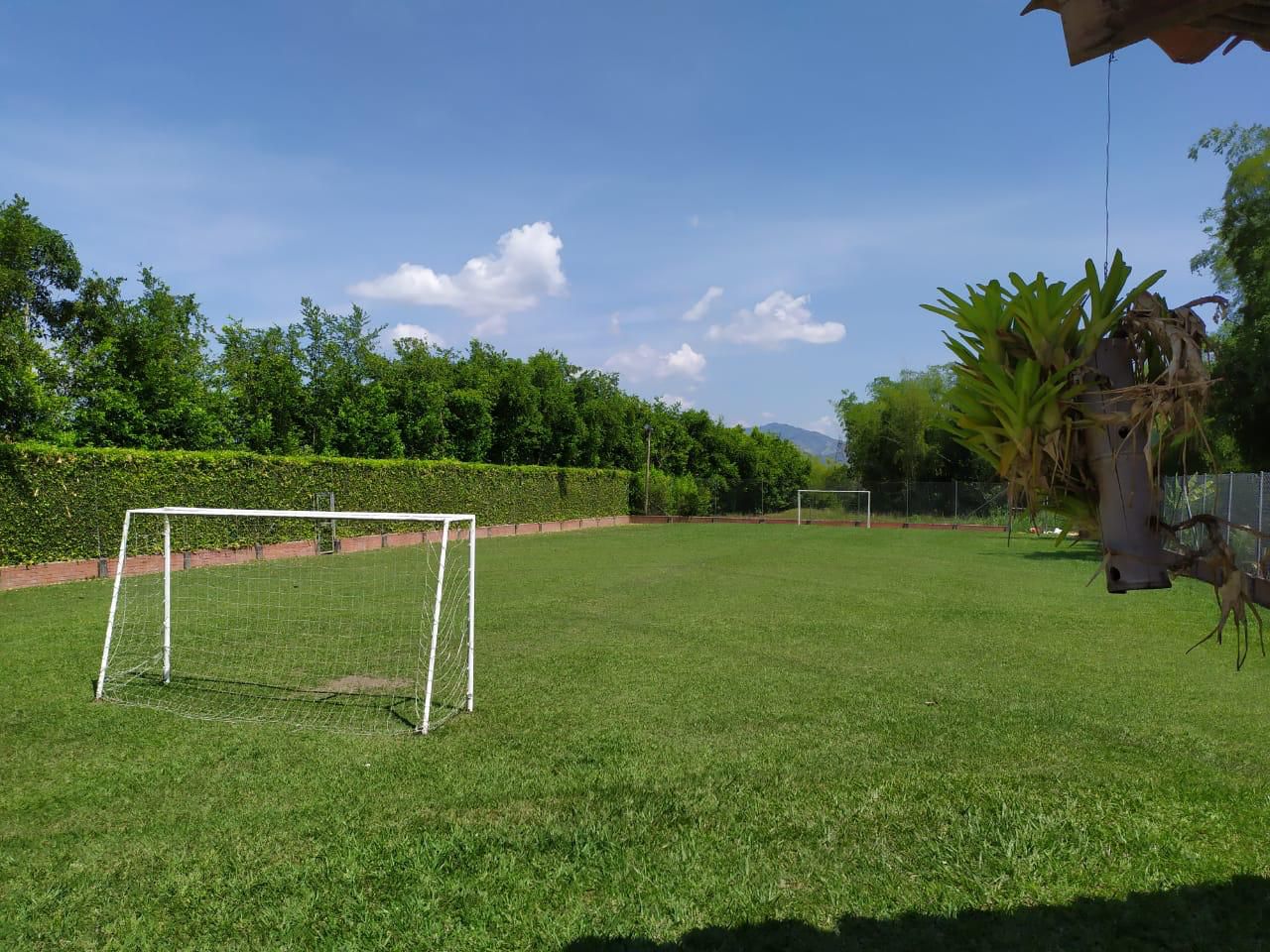 Finca en alquiler para grupos grandes, cuenta con piscina, jacuzzi y kiosco, además de zona BBQ y salón de eventos, ideales para reuniones y celebraciones. También dispone de cancha de fútbol, mirador, amplias zonas verdes y servicio de wifi, ofreciendo espacios pensados para el descanso, la recreación y el entretenimiento.